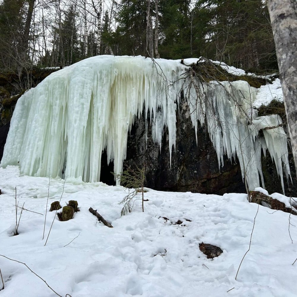 Erlebe die winterliche Schönheit des Koli Nationalpark und beeindruckende Eisfälle an einem Tag. Nach einer gemeinsamen Fahrt erreichen wir die verschneiten Höhen von Koli, wo sich ein atemberaubender Blick über den gefrorenen Pielinen eröffnet.
