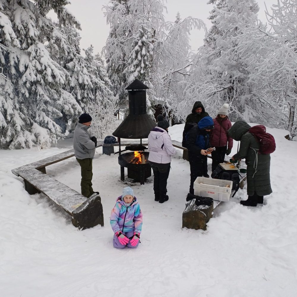 - Mittagessen am Feuer: Unterwegs machen wir es uns an einer Feuerstelle gemütlich und genießen ein warmes Lunch inmitten der winterlichen Landschaft.